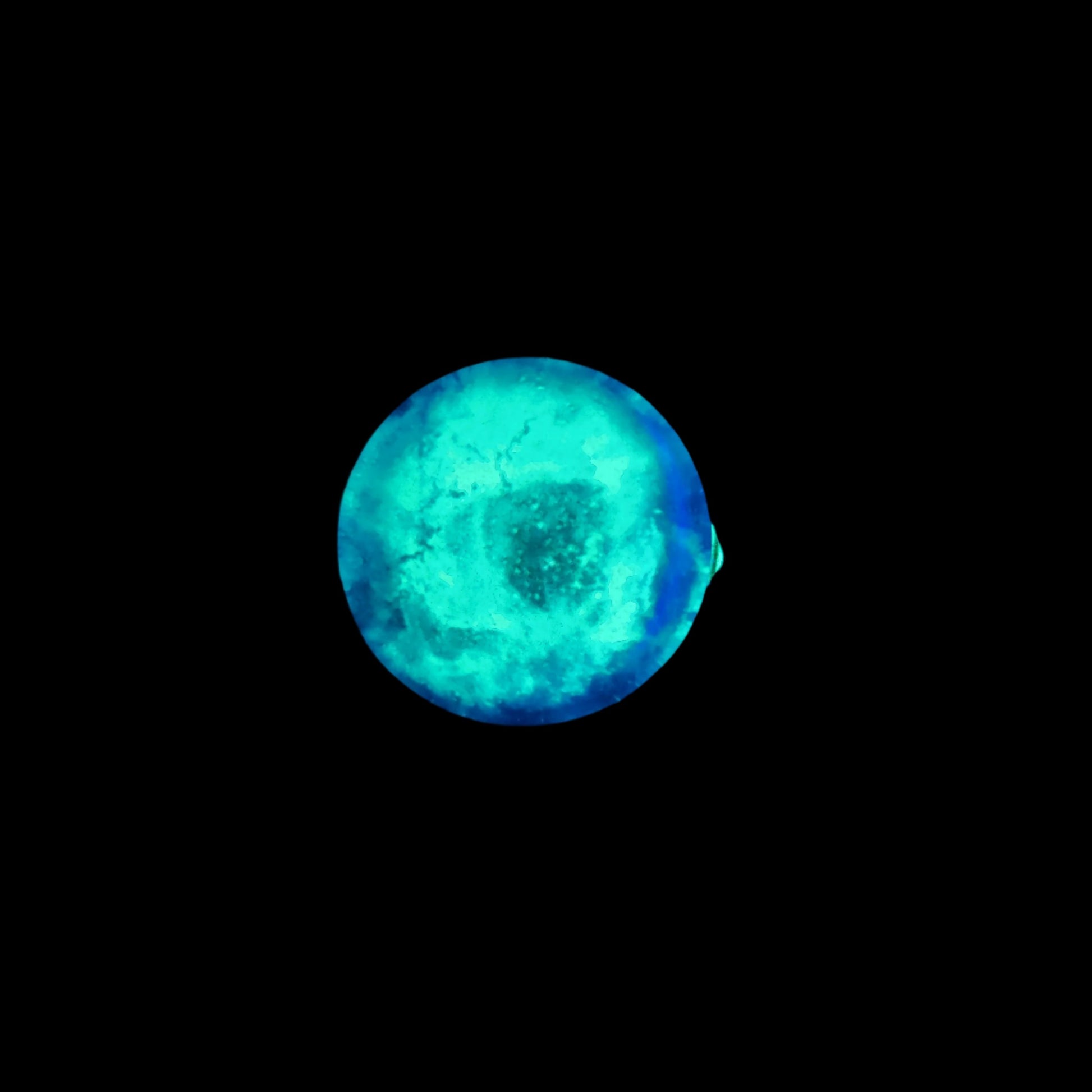 A funky, glowing galactic magnet that seems to have eyes and lights up in the dark (and even more stunning under a blacklight/uv light)!