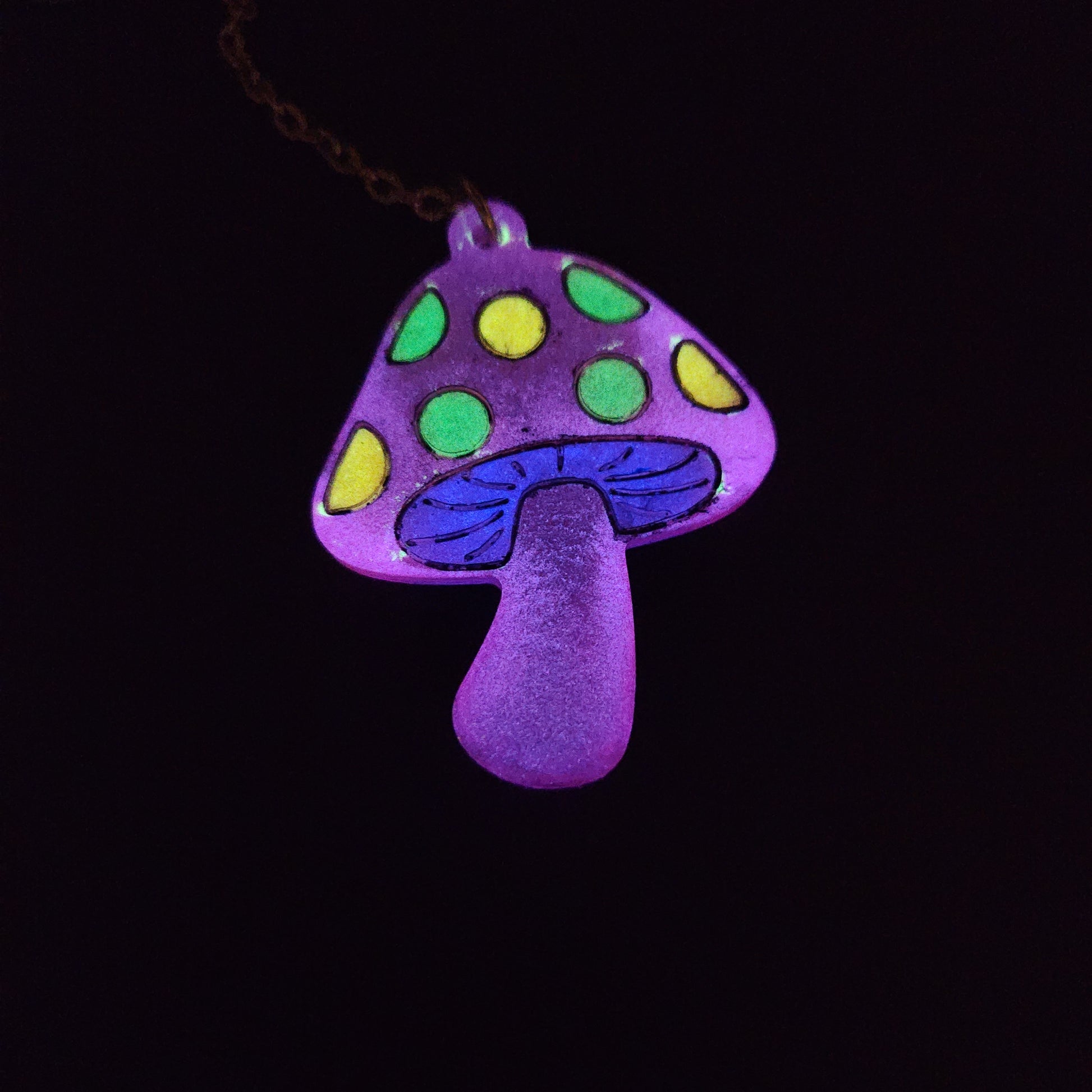 Pink Mushroom key-chain *Glows in blacklight/UV & Glow-in-the-dark*