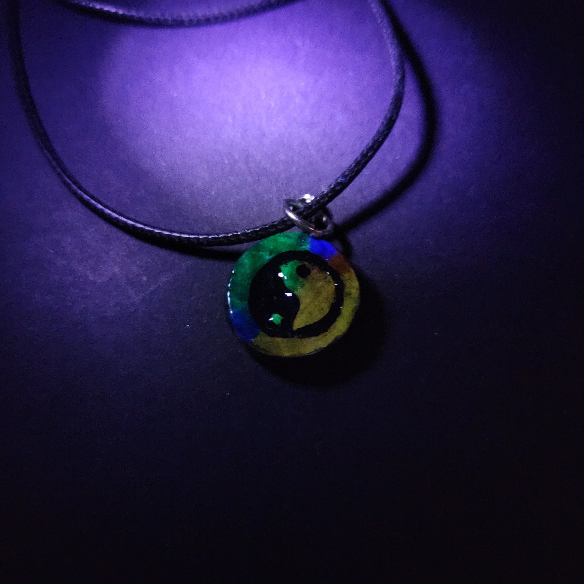 Yin Yang tie-dye pendant *Blacklight/UV Light activated*